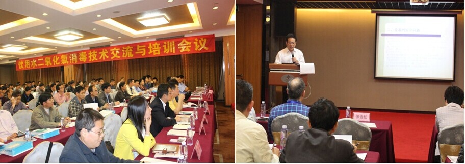公司總經理崔永順、營銷總監石楊、技術總監包肖文親臨會議現場,中國疾病控制中心環境與健康相關產品安全所水質安全監測室張嵐主任、中國城鎮供水排水協會科學技術委員 會尤作亮博士、歐泰華技術總監包肖文、深圳市水務(集團)有限公司王春工程師等行業資深專家就二氧化氯在飲用水中設備選型、水質監測、技術控制、運行維護等進行了全面分析與交流;會議期間,歐泰華技術專家團隊為104位供水企業代表解答飲用水中使用二氧化氯水消毒技術方面的知識。