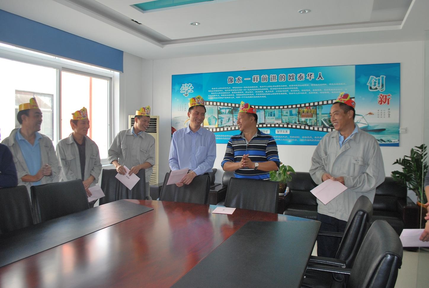 “祝你生日快樂,祝你生日快樂。。。。。。”伴隨著《生日歌》那熟悉的旋律,現場融洽和諧的氣氛,讓大伙兒都洋溢著開心幸福的笑容,享受著這輕松、愉快的時光。會上由公司領導--孫總給每一位“壽星”送上精美的賀卡并致以誠摯的問候與祝福。