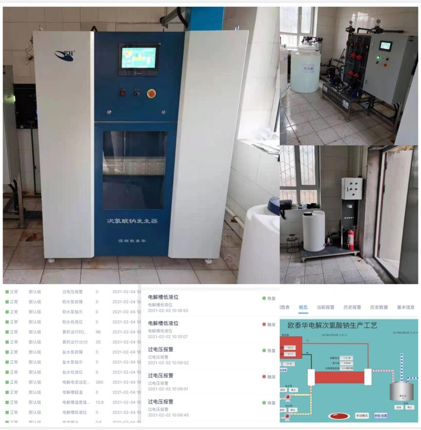 新疆阿克蘇水務環保集團股份有限公司安裝使用歐泰華2000型電解次氯酸鈉發生器,配套手機APP遠程監控系統;實現了水廠生產過程自動化,水務遠程管理信息化,手機APP監控、短信報警提醒、數據報表等功能,大大降低水務工作勞動強度,保障用水安全。