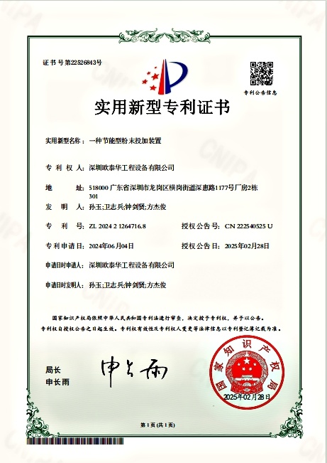 聽說沒?歐泰華硬核專利來了!專治水處理人三大痛點的節能型粉末投加裝置,剛拿下國家實用新型專利,污水處理廠、自來水廠的老師傅們看完直拍大腿——早該這么干了!