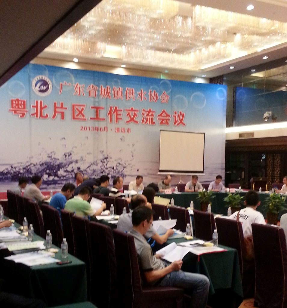 由廣東省城鎮供水協會主持召開的2013年粵北片區工作交流會議于6月21日在廣東省清遠市好來登大酒店召開,廣東水協秘書長林志光,副秘書長陳少飛等領導和粵北片區各水司領導以及各與會參展單位代表參加了會議,我公司由華南片區經理代表參與,參會人員總計100多人。